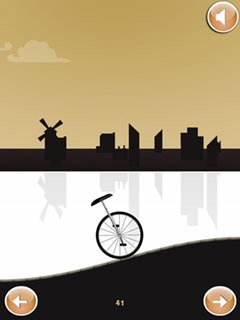 Monocycle is a fast paced arcade game where you have to balance not on a regular bike but on a monocycle. Once the game starts you can only influence if the monocycle shall lean forward or backward. If you lean too much to one side you will inevitable fall and you will break the monocycle. Now you might think it would be a good idea to drive very slowly with almost no slant but this is very, very wrong. You need every little bit of momentum to get past the hills. Otherwise you will come to a halt or even go back. Play Monocycle now for free and show your skills!